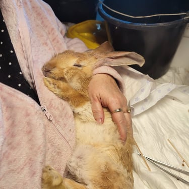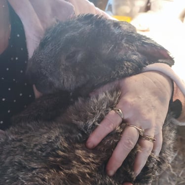 Die Entscheidung, Familie Marquart aus Weiden zu helfen, fiel einstimmig. Sie waren die ersten Retter und haben die Tiere erst einmal eingestallt und versorgt, aber dort konnten sie nicht bleiben. Also haben wir uns entschlossen, den Tieren an unserem Gnadenhof einen Platz zu geben. Mit 2 Autos und jeder Menge Transportboxen starteten wir und kamen mit jeder Menge Kaninchen zurück.